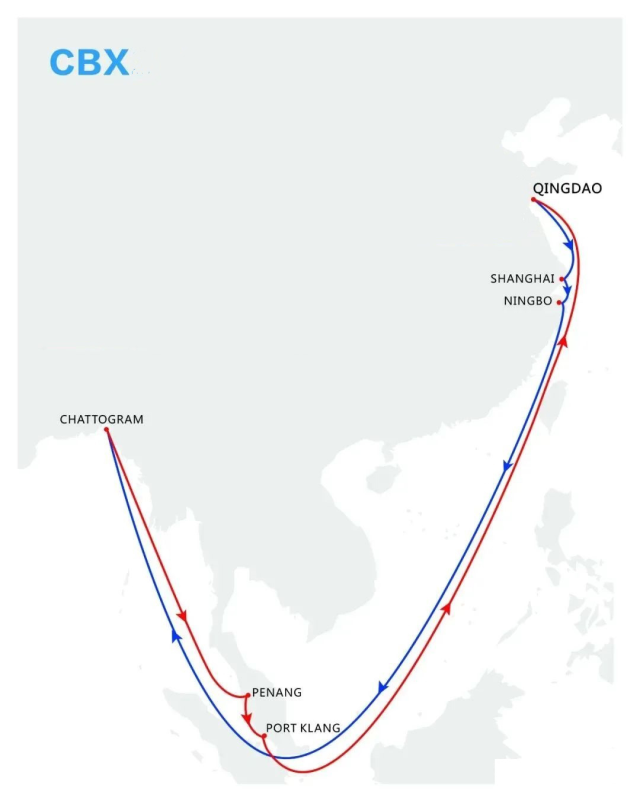 周一CBX航線、周五CBX2航線,直達11天到吉大港。